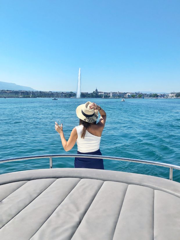 A peine partis, nous avons pu déguster le best seller de la marque, le sauvignon blanc. Le cadre était vraiment idyllique, d’un côté la rive droite avec ces beaux hôtels de luxe et de l’autre l’immanquable jet d’eau en fonction.